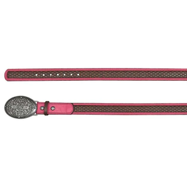 Catchfly Girls’ Basketweave With Pink Trim Belt