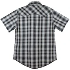 This girls’ print snap shirt from Cowgirl Hardware has the front and back yokes outlined in white embroidery. Snaps across the front placket, 2 chest pockets, and cuffs complete the classic western style of the shirt.