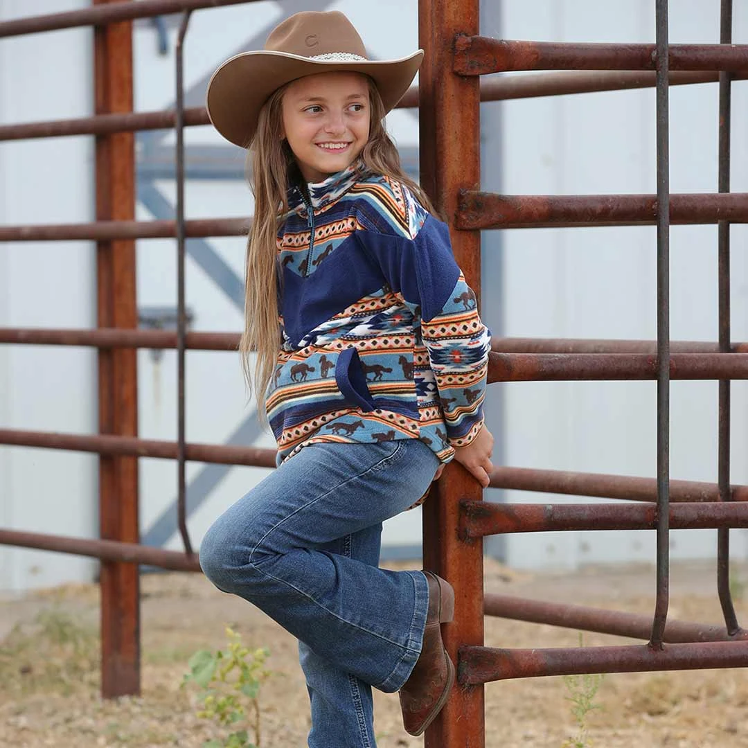 Cruel Denim Girls’ Aztec Horse 1/4 Zip Polar Fleece Pullover