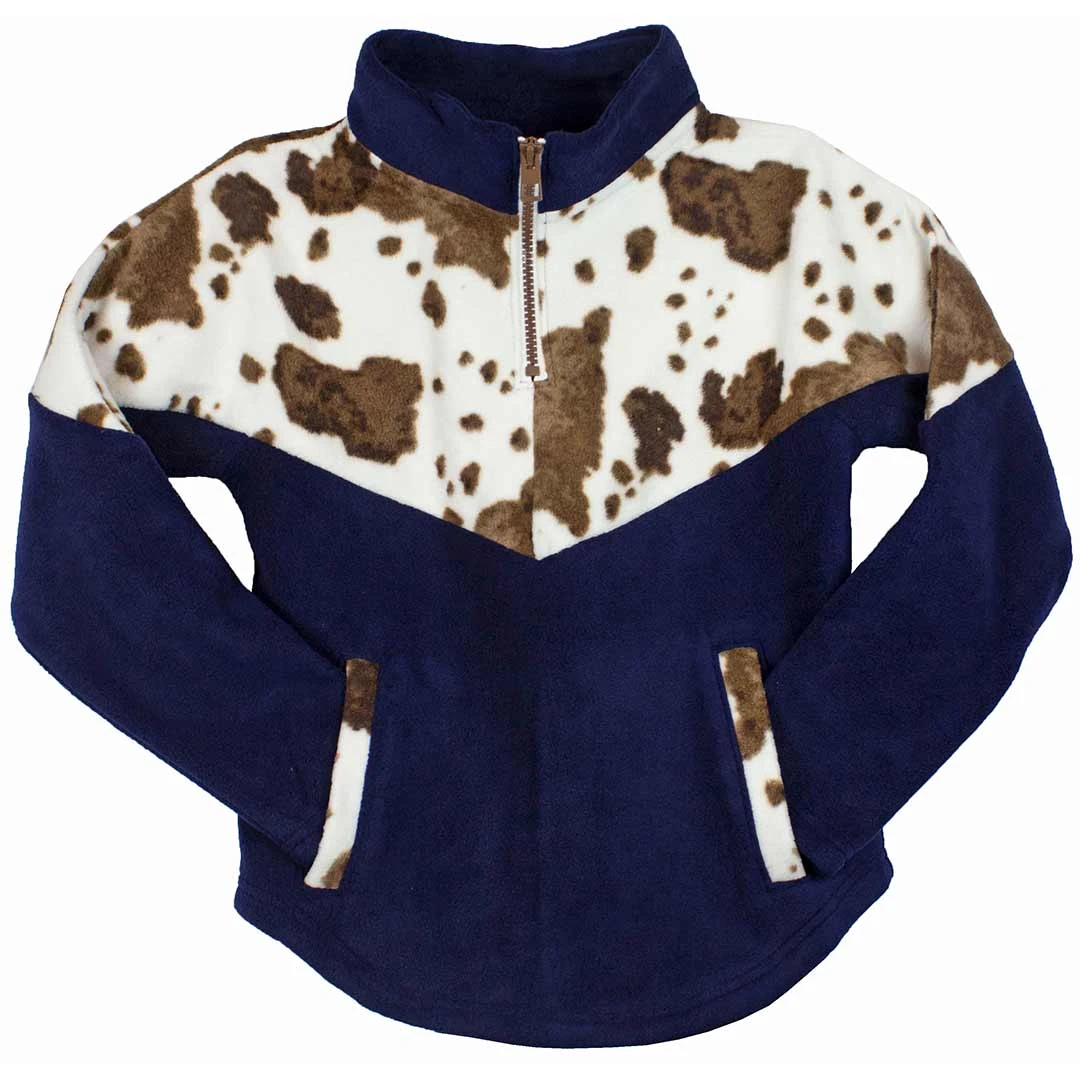 Cruel Denim Girls’ Cow Print 1/4 Zip Fleece Pullover
