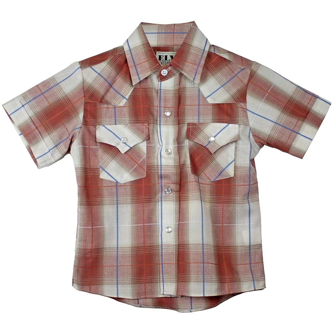 Ely Cattleman Boys’ Plaid Print Snap Shirt