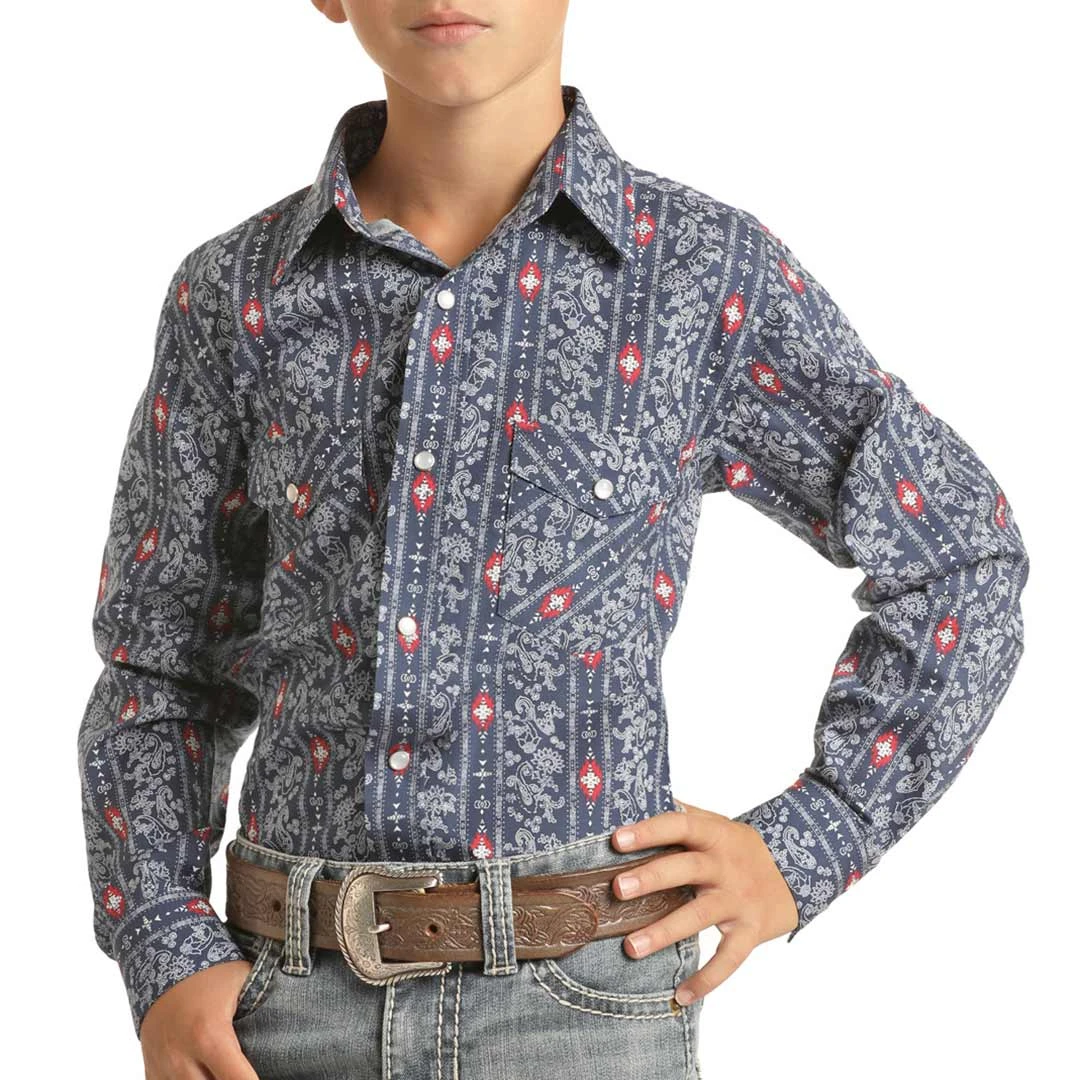 Panhandle Select Boys’ Paisley Stripe Print Snap Shirt