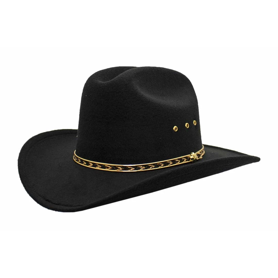 From Western Express, this adorable faux felt cowboy hat with black and gold hatband and elastic band to fit perfect, will have your little cowboy or cowgirl looking dapper and cute when paired with their favourite jeans and boots.