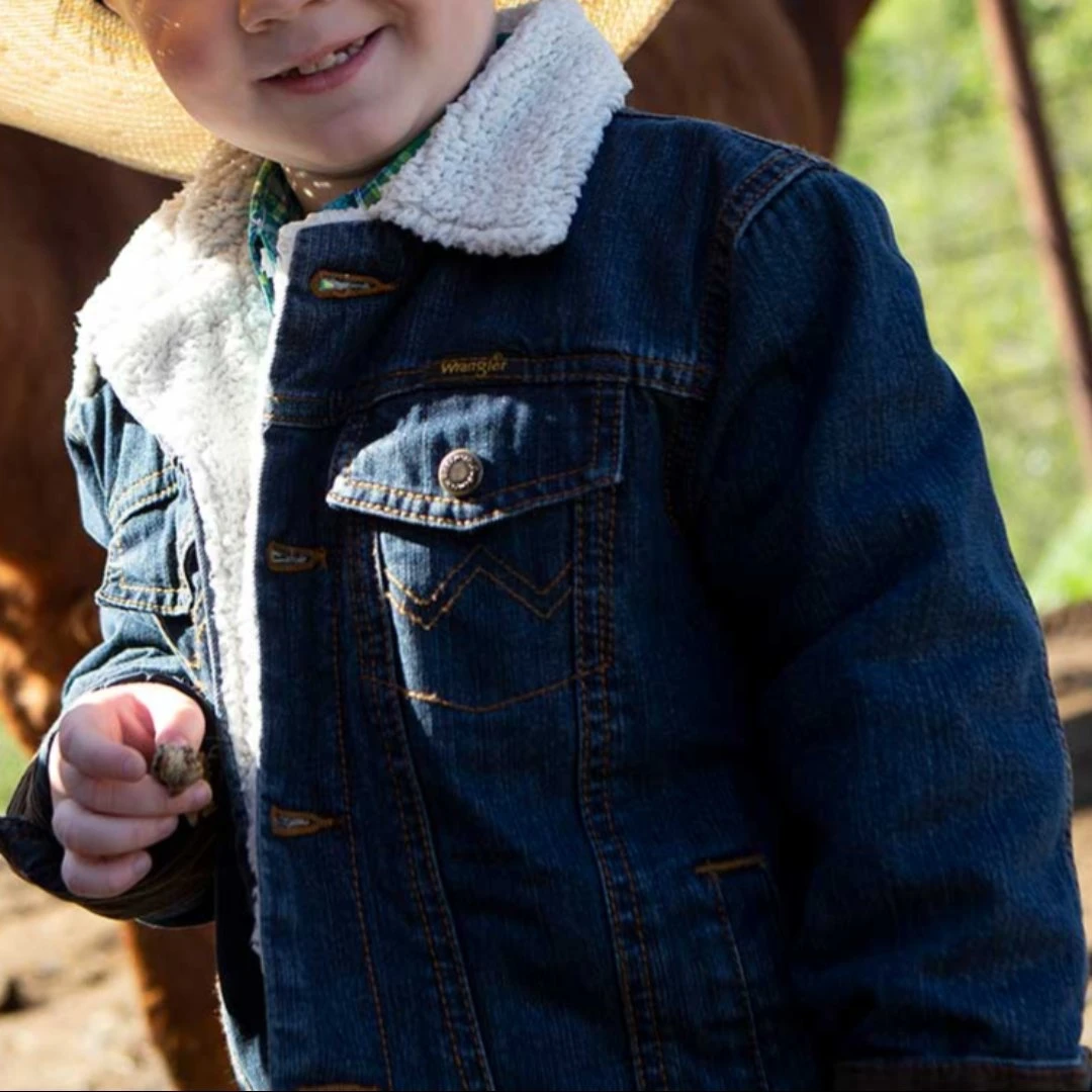 Keep your little guy warm during the cooler months in this Sherpa-lined denim jacket from Wrangler. The Western detailing gives it an authentic style, so he’ll always be ready to take on the next adventure.