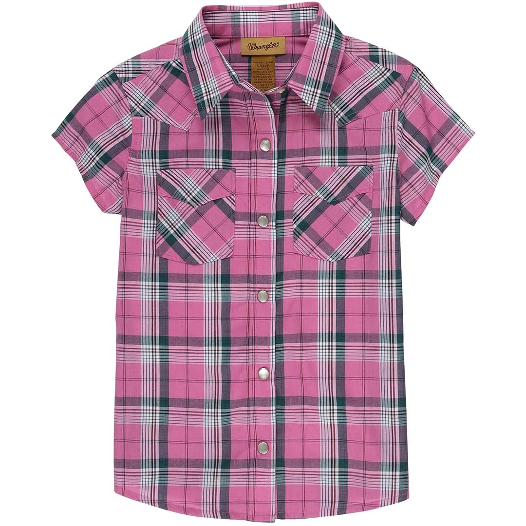 Wrangler Girls’ Short Sleeve Plaid Snap Shirt